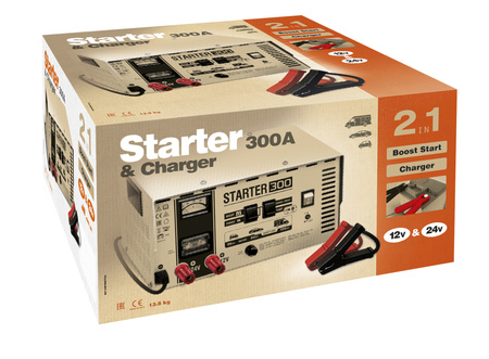 - GYS START 300 to profesjonalny prostownik z rozruchem 12/24 V. Ładuje akumulatory 38–300 Ah i umożliwia uruchamianie pojazdów z bateriami 35–100 Ah. Mocna konstrukcja, wysoki prąd i pełne zabezpieczenia.